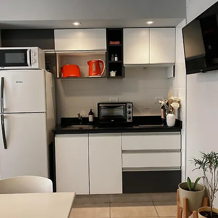 Geniet van een ingerichte kitchenette in Comodo Departamento Centro De Salta - Bedbook appartement met een waterkoker, een koelkast en een oven voor uw gemak. El Tren a las Nubes treinstation is maar op 800 meter verwijderd van dit 1-slaapkamer appartement.